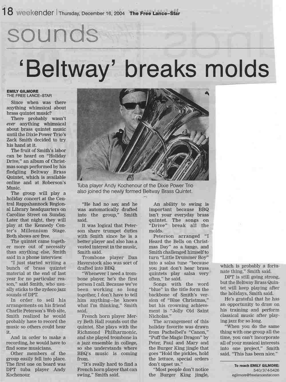 Free Lance-Star (the newspaper of Fredericksburg, Virginia) December 16, 2004 article by Emily Gilmore